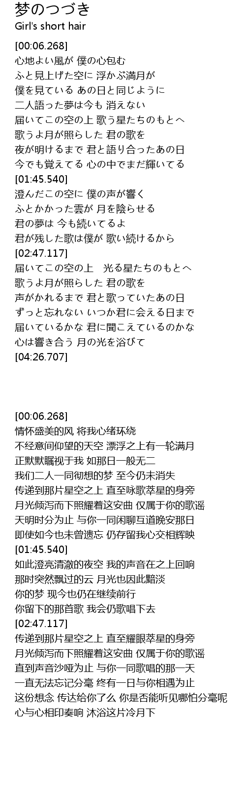 | [02:20.593] | 君の夢は 今も続いてるよ |