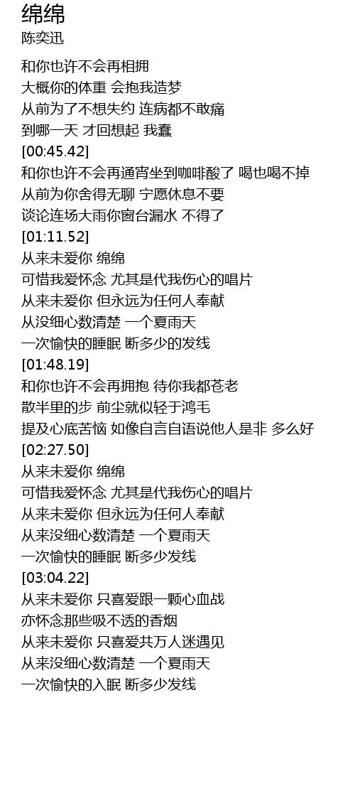 | [02:41.74] | 从来未爱你 但永远为任何人奉献 |