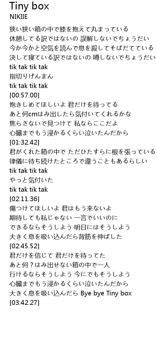 | [03:32.72] | 大きく息を吸い込んだら Bye bye Tiny box |