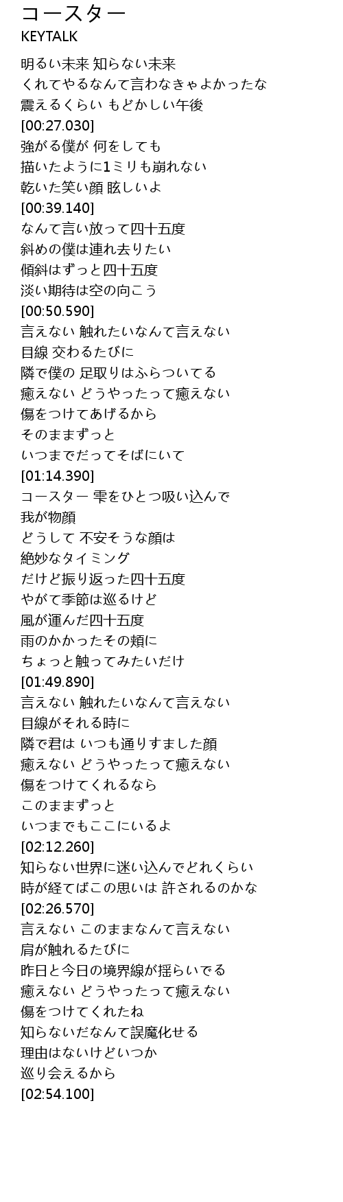 | [00:42.730] | 斜めの僕は連れ去りたい |