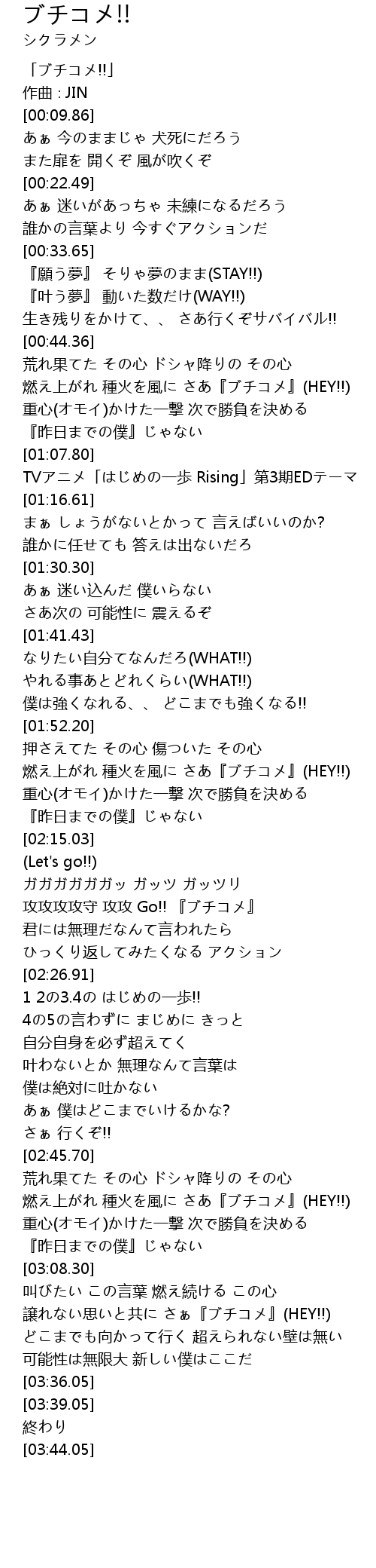 [02:19.26] 攻攻攻攻守 攻攻 Go!! 『ブチコメ』