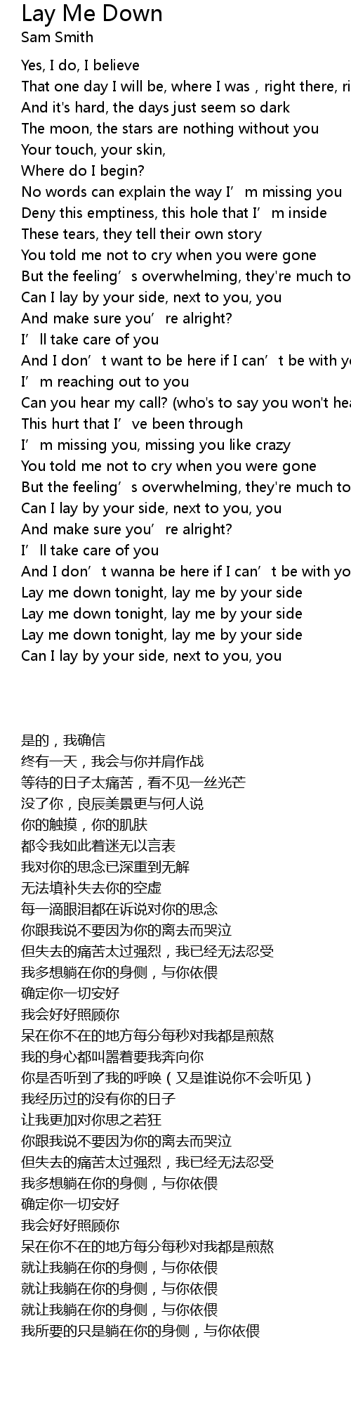 | 歌曲 | Lay Me Down |