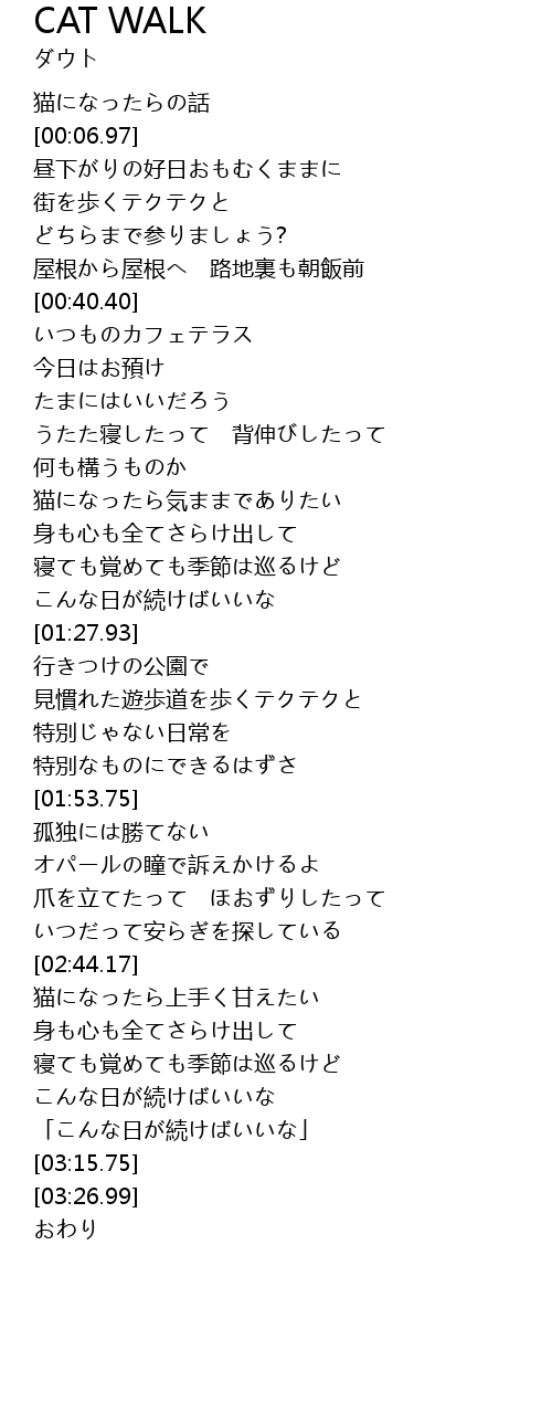 | [02:45.01] | 猫になったら上手く甘えたい |