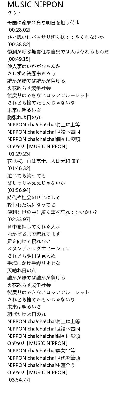 | [03:35.66] | NIPPON cha!cha!cha!世論へ賛同 |