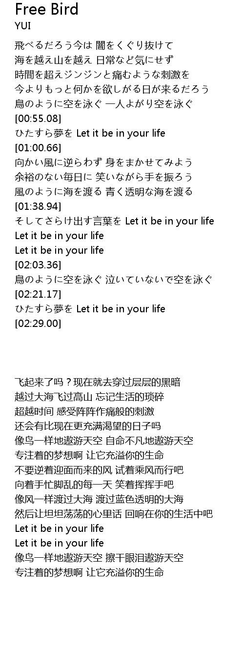 | [00:40.34] | 像鸟一样地遨游天空 自命不凡地遨游天空 |