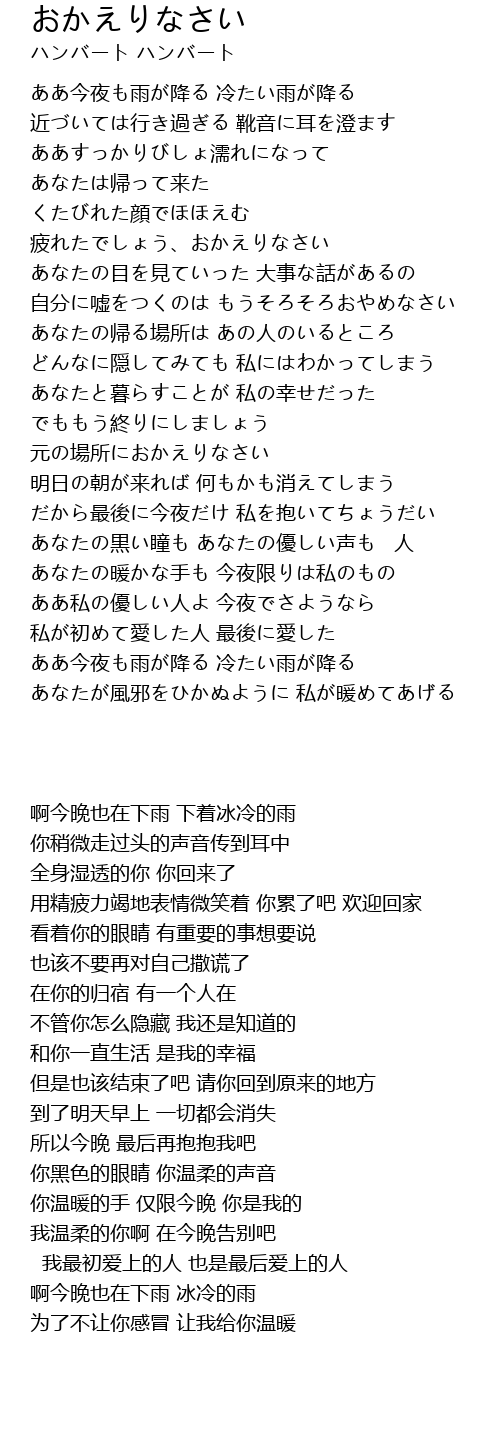 | [01:53.74] | あなたの帰る場所は あの人のいるところ |