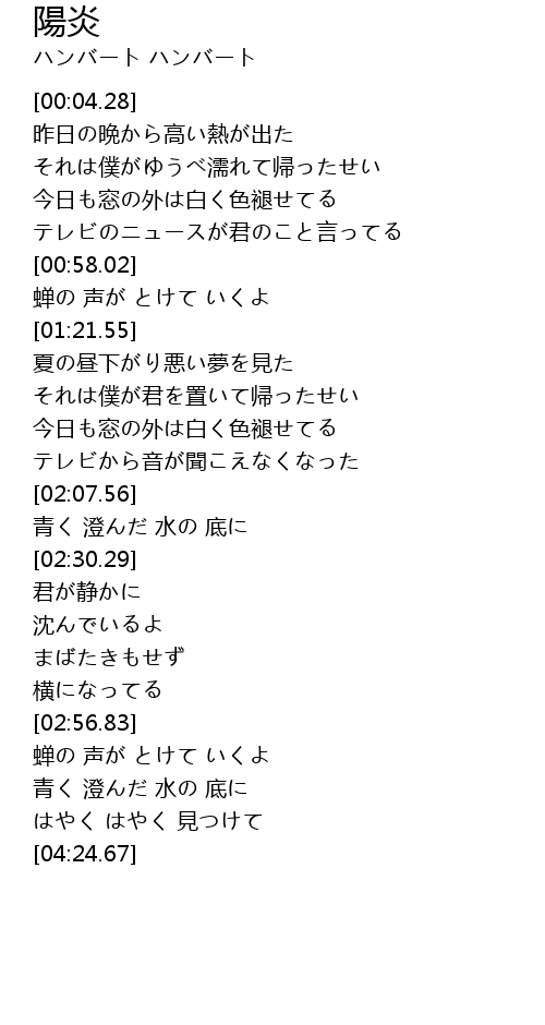 | [03:18.36] | 蝉の 声が とけて いくよ |