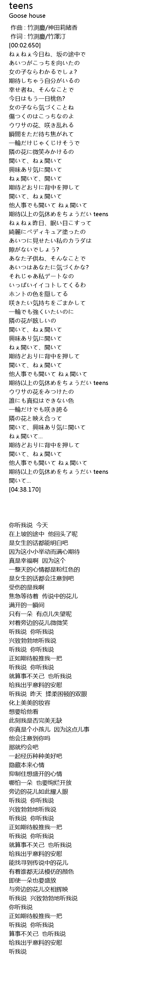 | [04:17.920] | 期待以上の気休めをちょうだい teens |