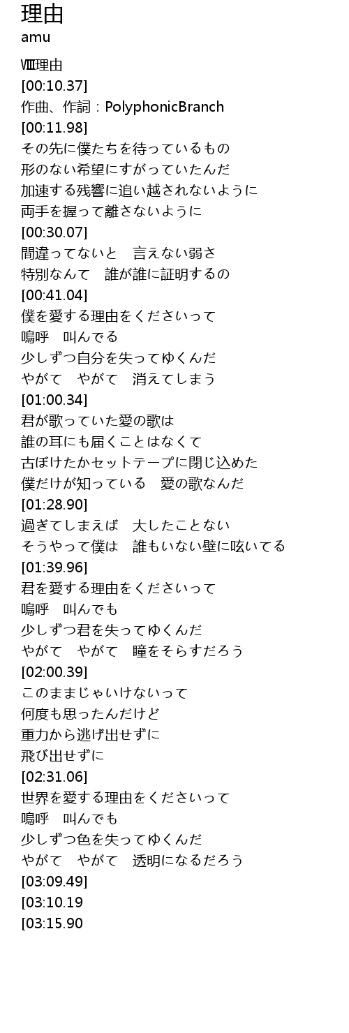 | [02:51.00] | 世界を愛する理由をくださいって |