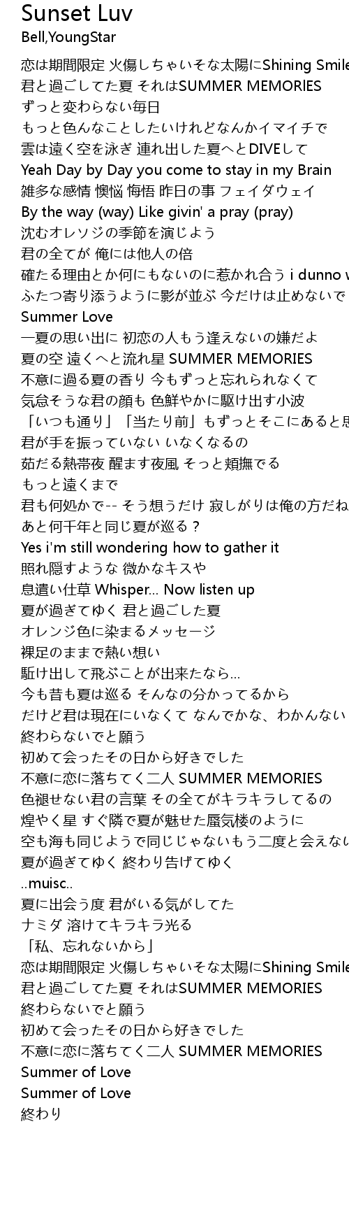 Sunset Luv 歌词