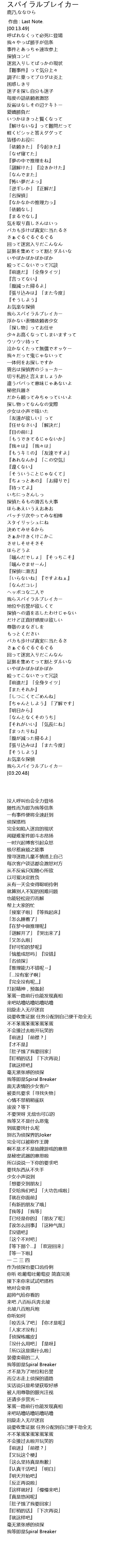 | [03:16.62] | 毫无紧张感的侦探 |