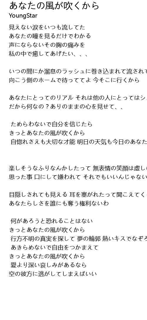 | 何があろうと恐れることはない きっとあなたの風が吹くから | |
