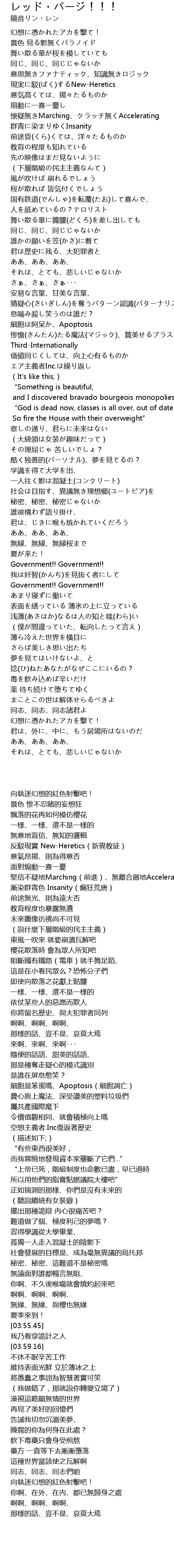 | [04:53.50] | 幻想に憑かれたアカを撃て! |