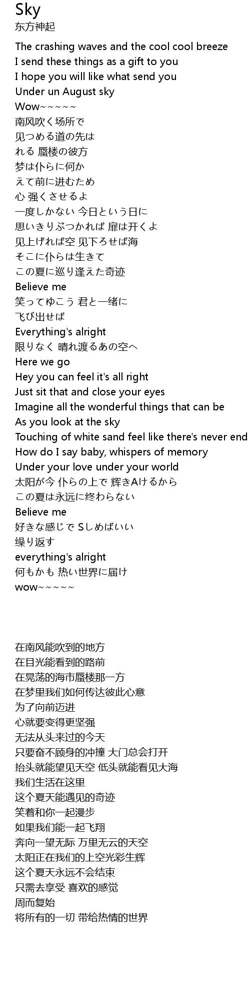 | 歌曲 | Sky |