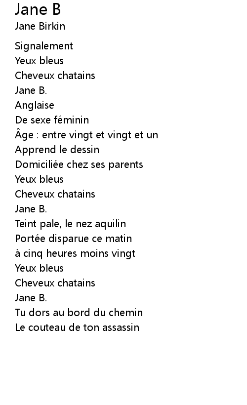| 歌手 | Jane Birkin |