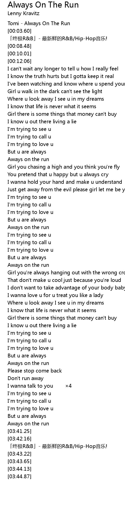 | [03:42.71] | 「终极R&B」- 最新鲜的R&B/Hip-Hop音乐! |