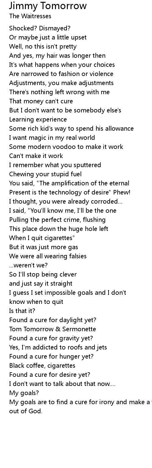 My goals are to find a cure for irony and make a fool |