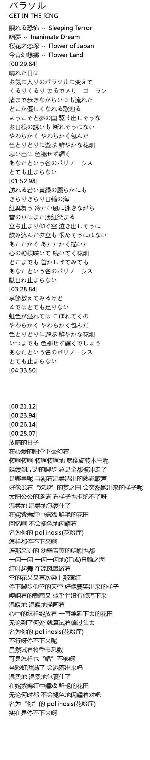 | [03:20.17] | 名为你的 pollinosis(花粉症) |