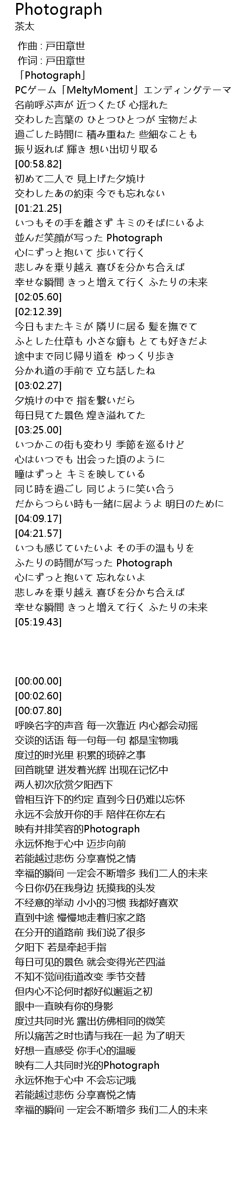 | [04:41.97] | ふたりの時間が写った Photograph |