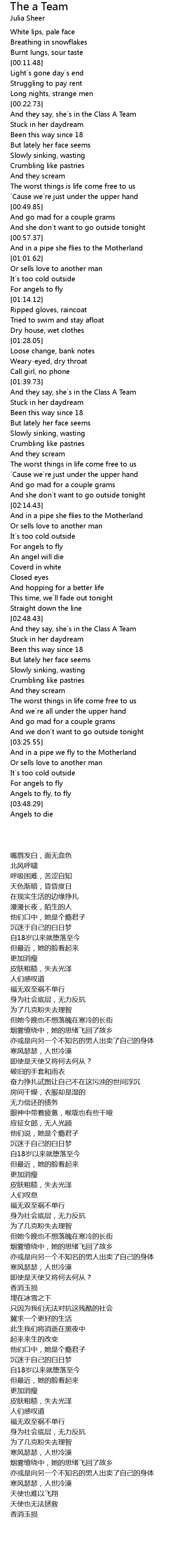 | [00:23.79] | And they say, she s in the Class A Team |