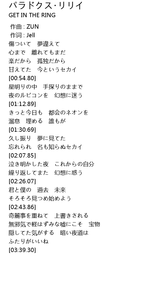 | [01:59.12] | 忘れられ 名も知らぬセカイ |