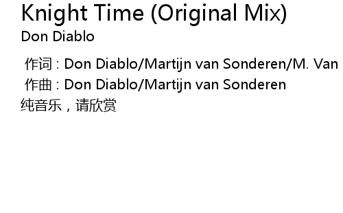 | 歌曲 | Knight Time (Original Mix) |