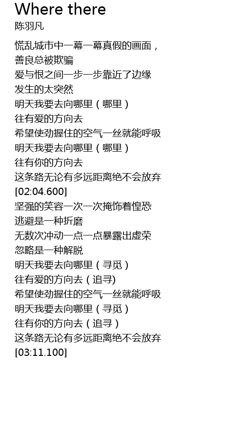 | [02:56.620] | 明天我要去向哪里(寻觅) |