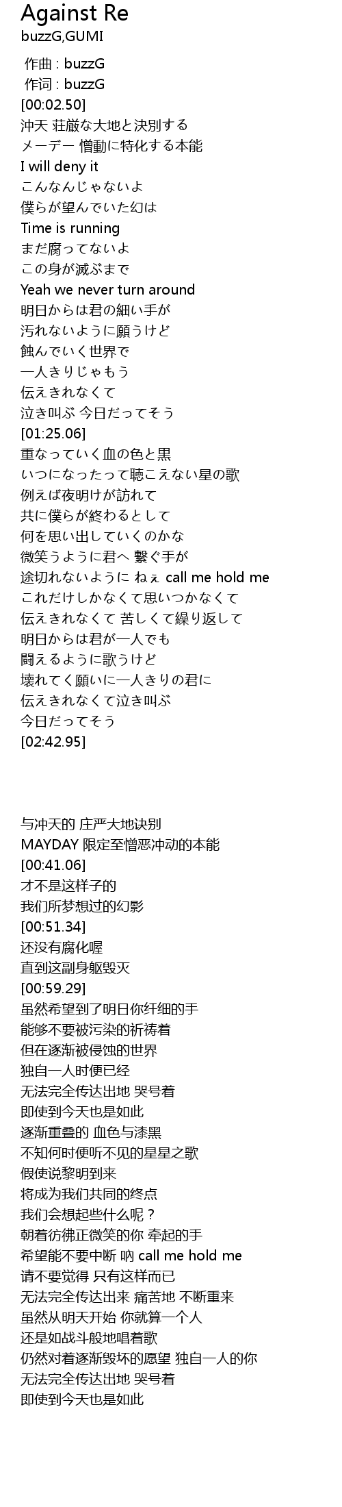 | [00:36.11] | MAYDAY 限定至憎恶冲动的本能 |