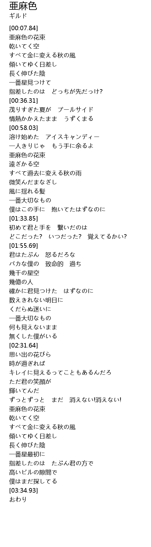 | [01:13.09] | すべて過去に変える秋の雨 |