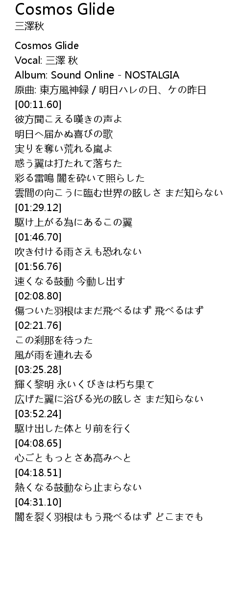 | [00:08.88] | 原曲: 東方風神録 / 明日ハレの日、ケの昨日 |