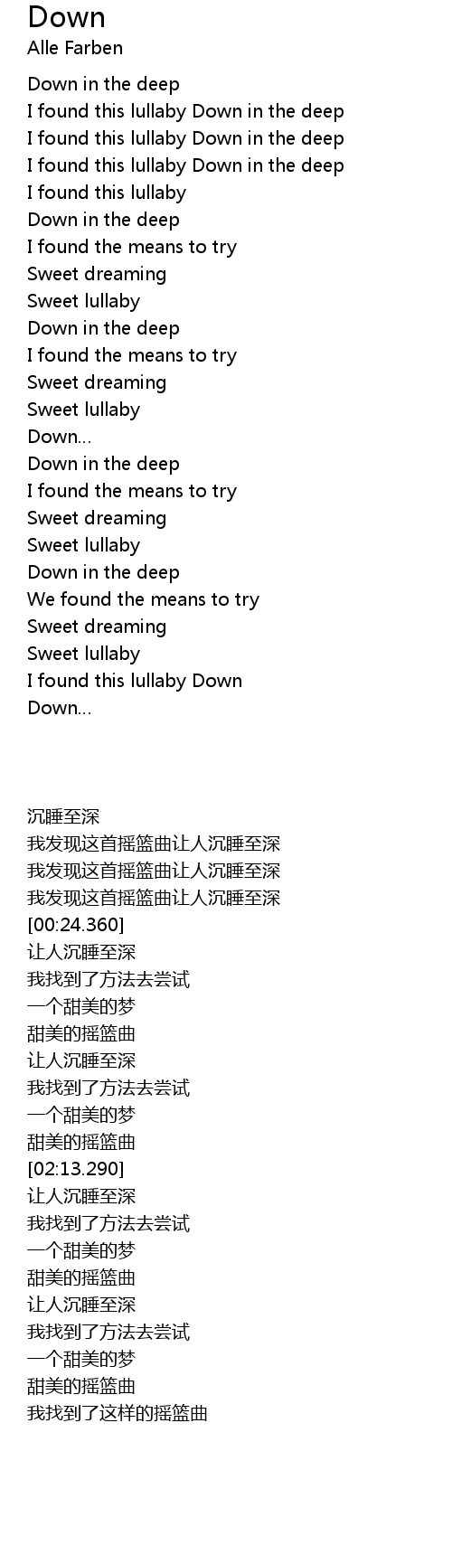 | [00:11.690] | 我发现这首摇篮曲让人沉睡至深 |