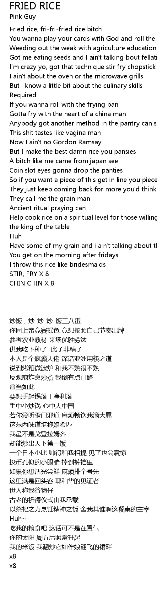 Fried rice, fri-fri-fried rice bitch |