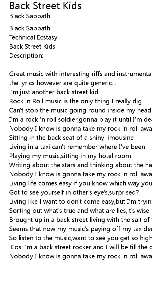 'Cos I'm a back street rocker and I will be till the day I die |