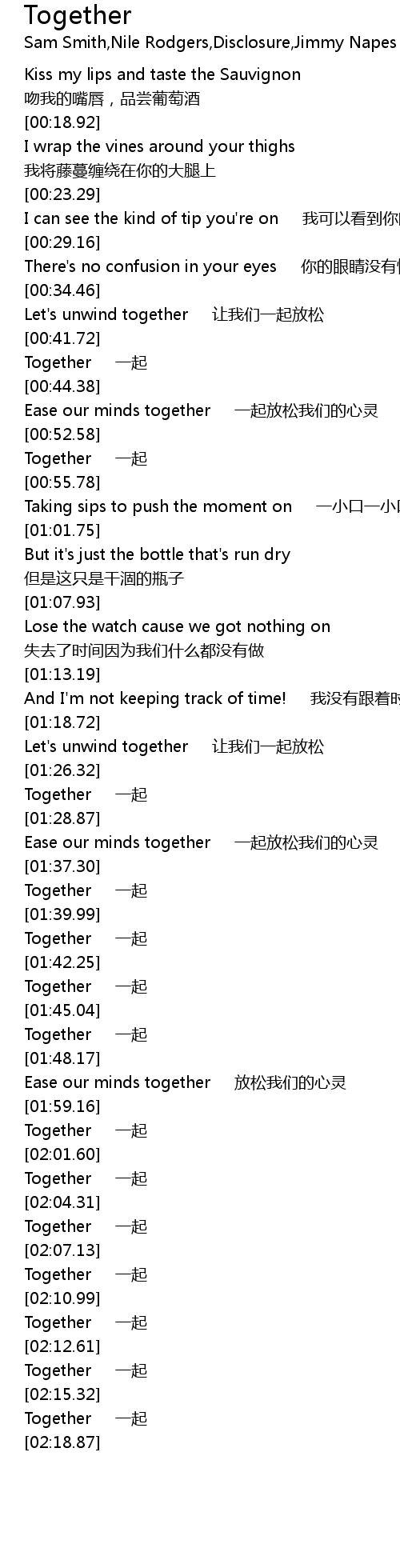 | [01:53.41] | Ease our minds together 放松我们的心灵 |