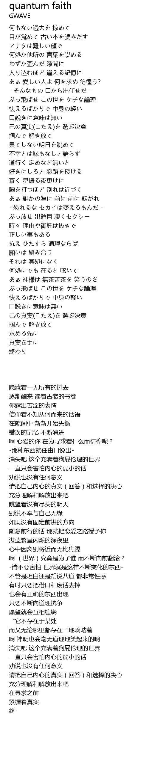 | 歌曲 | quantum faith |