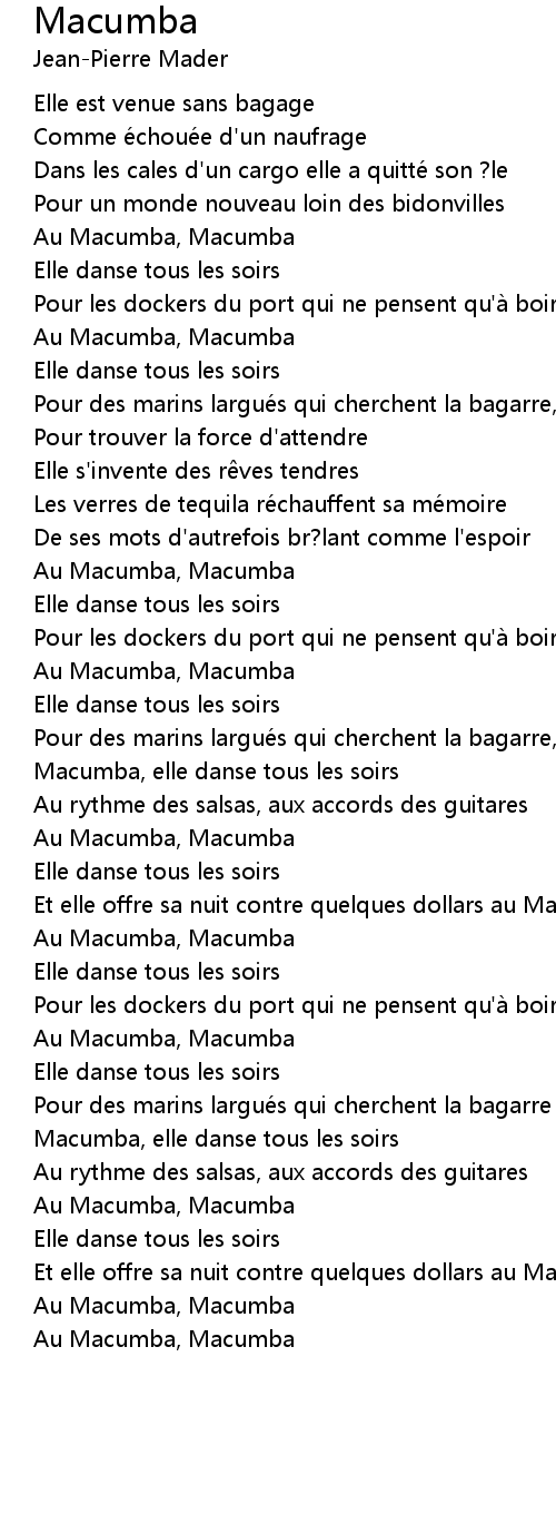 | [02:54.635] | Macumba, elle danse tous les soirs |