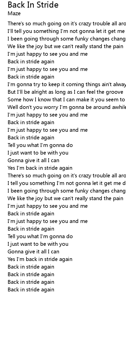 Yes I'm back in stride again |