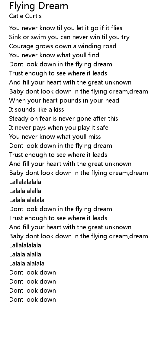 Baby dont look down in the flying dream,dream |