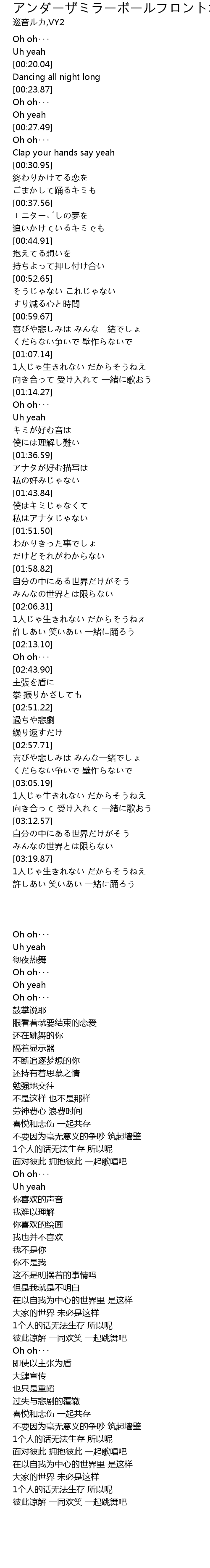 | [03:09.18] | 面对彼此 拥抱彼此 一起歌唱吧 |