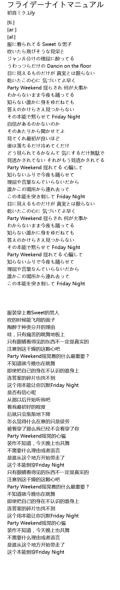 | [03:24.83] | 这个本能刺穿Friday Night |