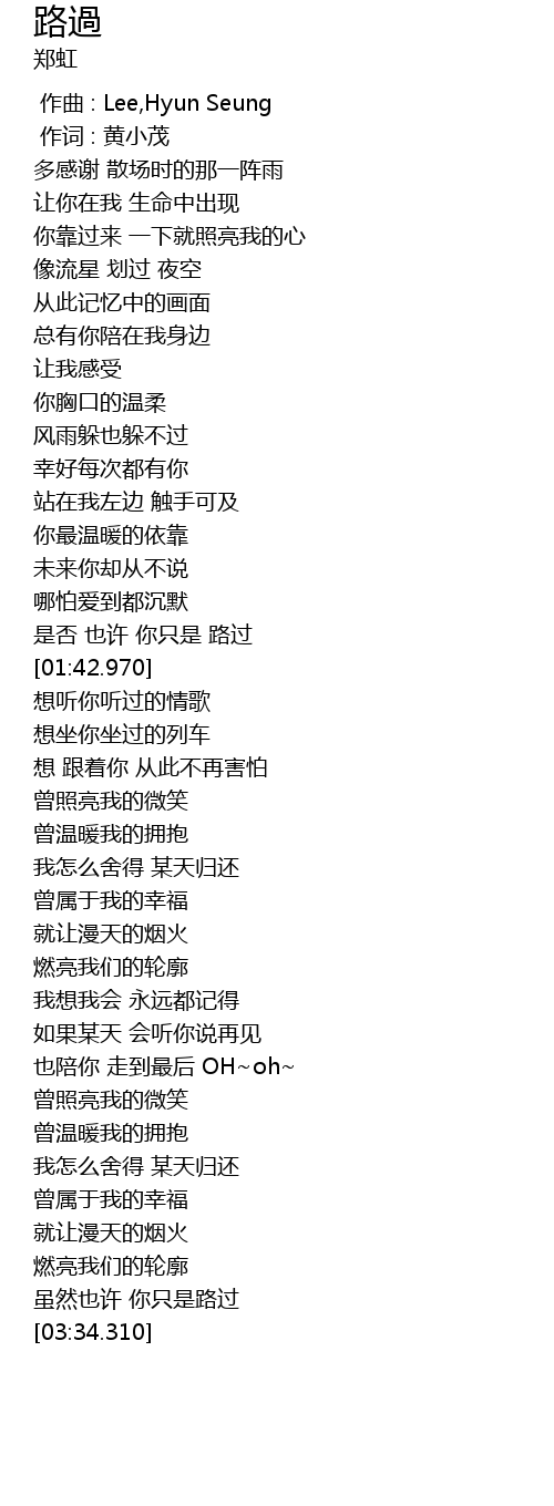 | [01:31.050] | 是否 也许 你只是 路过 |