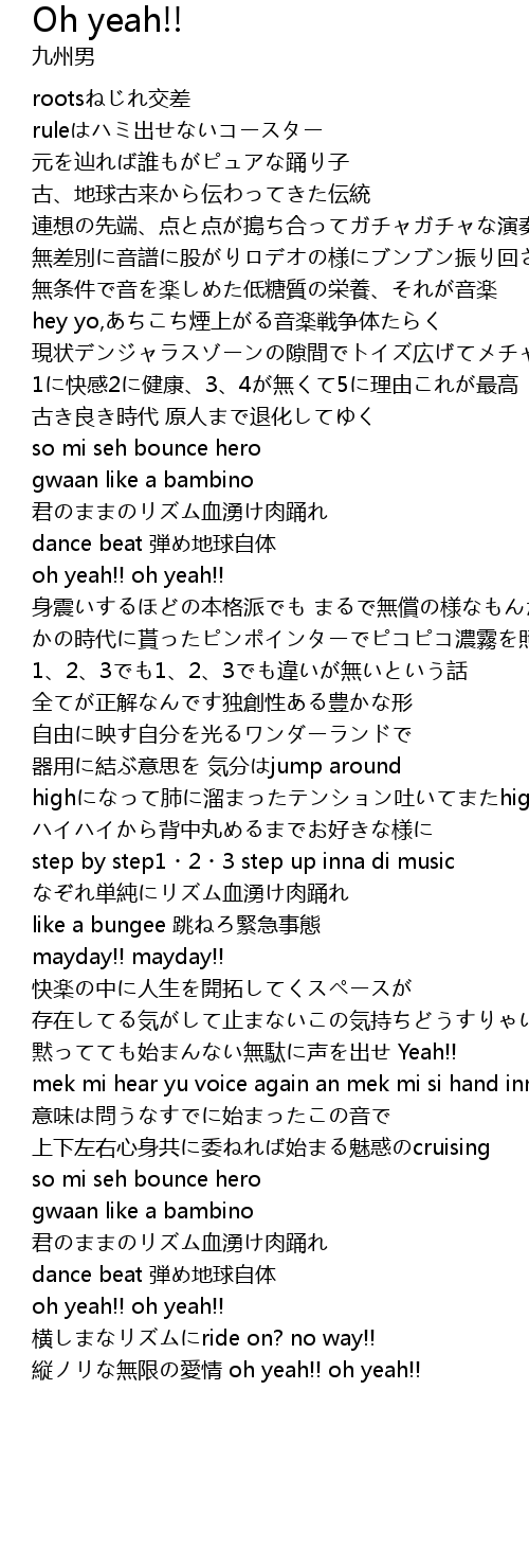 | 縦ノリな無限の愛情 oh yeah!! oh yeah!! |