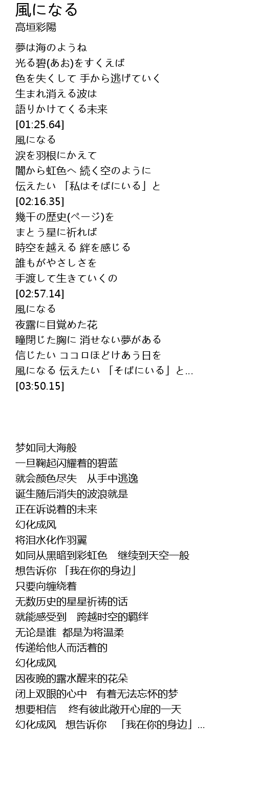 風になる 伝えたい 「そばにいる」と… |
