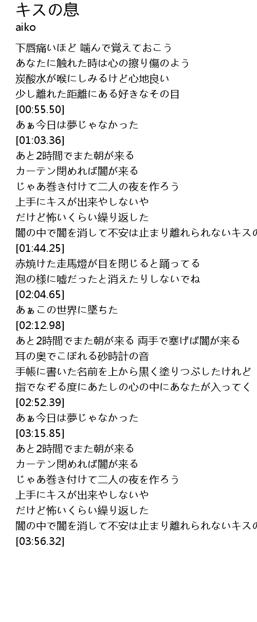 | [03:34.38] | 上手にキスが出来やしないや だけど怖いくらい繰り返した |
