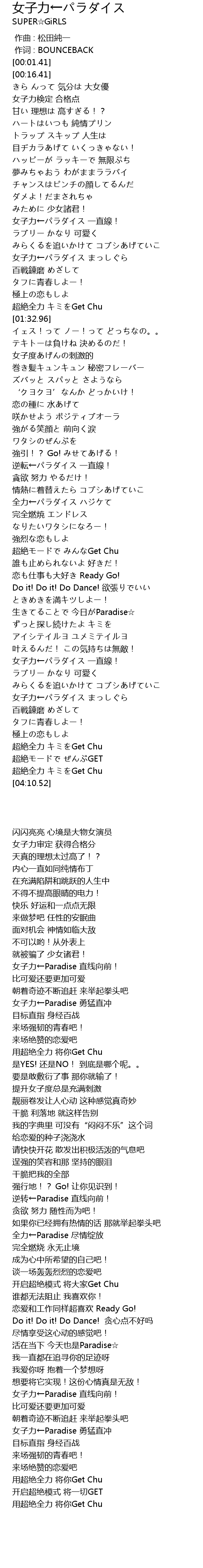 | [04:06.51] | 超絶全力 キミをGet Chu |
