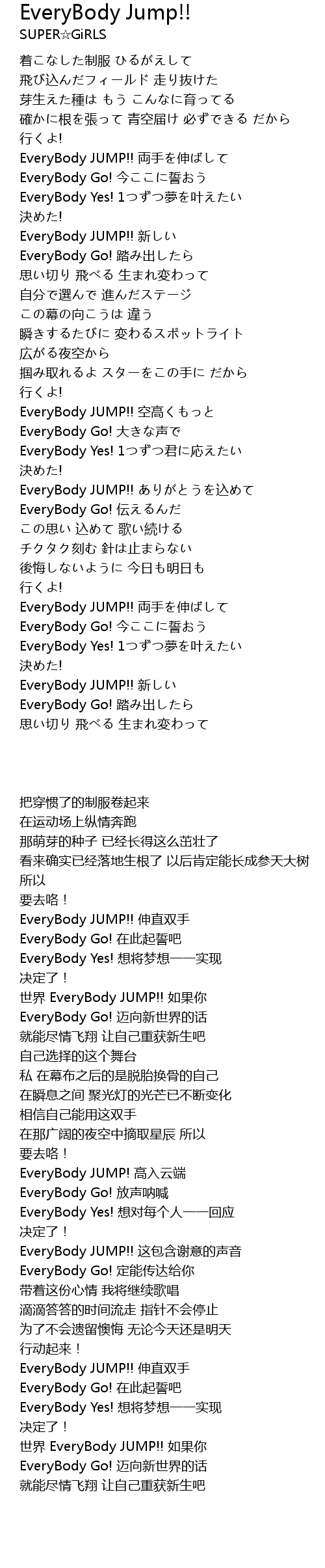 | [01:00.200] | EveryBody JUMP!! xīn |