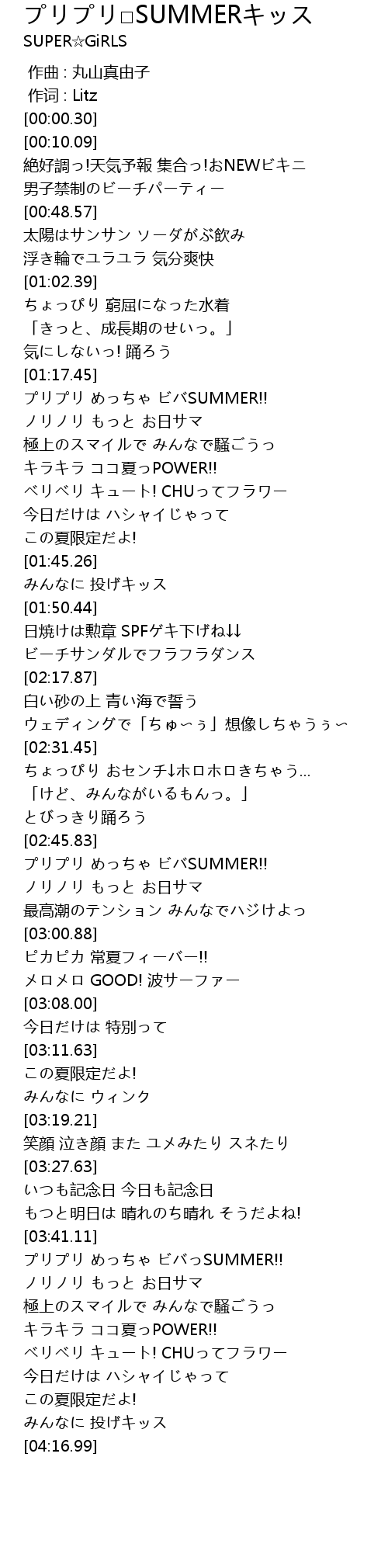 | [03:44.30] | プリプリ めっちゃ ビバっSUMMER!! |