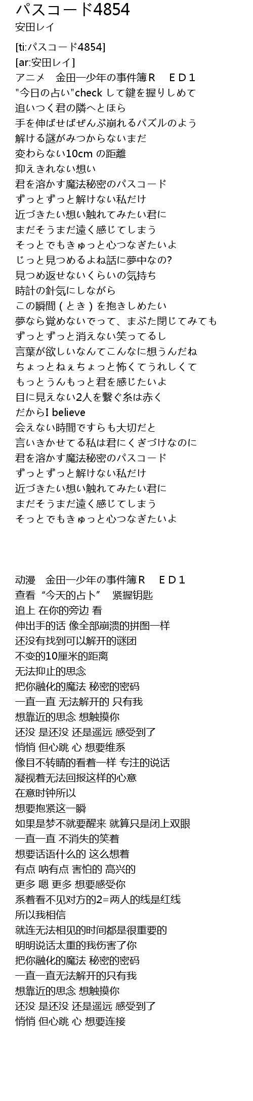 | [02:56.334] | 君を溶かす魔法秘密のパスコード |