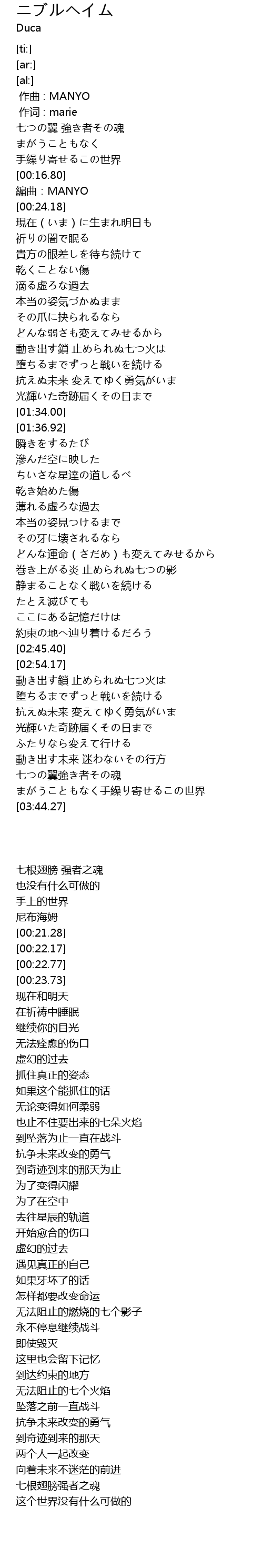 | [00:01.03] | 七つの翼 強き者その魂 |