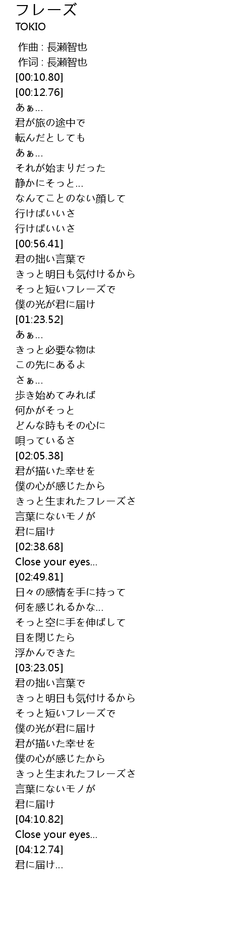 | [00:00.00] | 作曲 : 長瀬智也 |